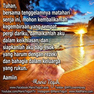 @MTLovenHoney Katakanlah Aamiin atau Retweet, jika DOA SENJA ini adalah doa Anda juga. Love you!