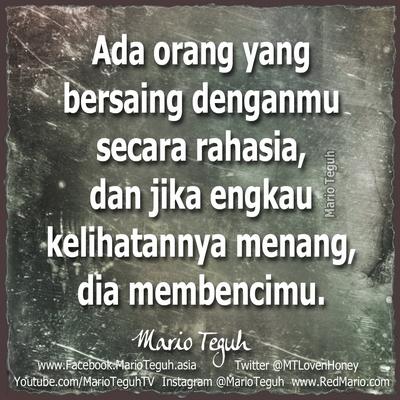 @MTLovenHoney: Ada orang yang bersaing denganmu secara rahasia, dan jika engkau kelihatannya menang, dia membencimu. MTThanks. Twitter will use this to make your timeline better. UndoUndo