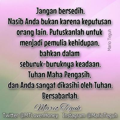@MTLovenHoney: Jangan bersedih. Nasib Anda bukan karena keputusan orang lain. MT pic.twitter.com/RXJXigh9xo”
