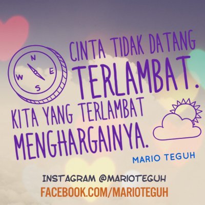 @MTLovenHoney. Karena cinta telah hadir saat kitapun hadir kedunia ini ,,,,:DThanks. Twitter will use this to make your timeline better. UndoUndo