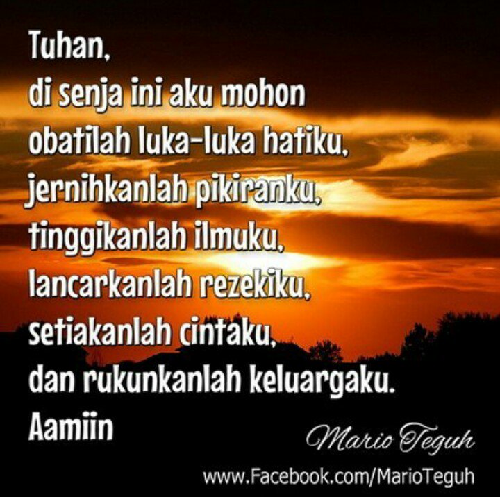 Amin...terima kasih atas doanya senja ini pak Mario Teguh, salam super dan selamat malam pak Mario Teguh.