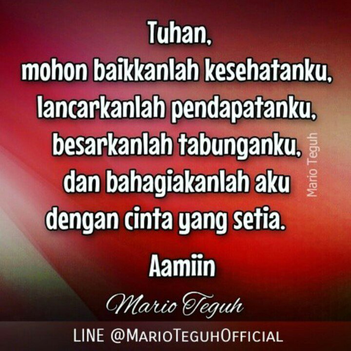 Amin...terima kasih atas doanya senja ini pak Mario Teguh,salam super dan selamat malam pak Mario Teguh.