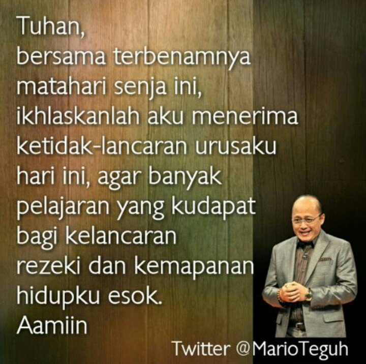 Amin...terima kasih atas doanya senja ini pak Mario Teguh,salam super dan selamat sore pak Mario Teguh.