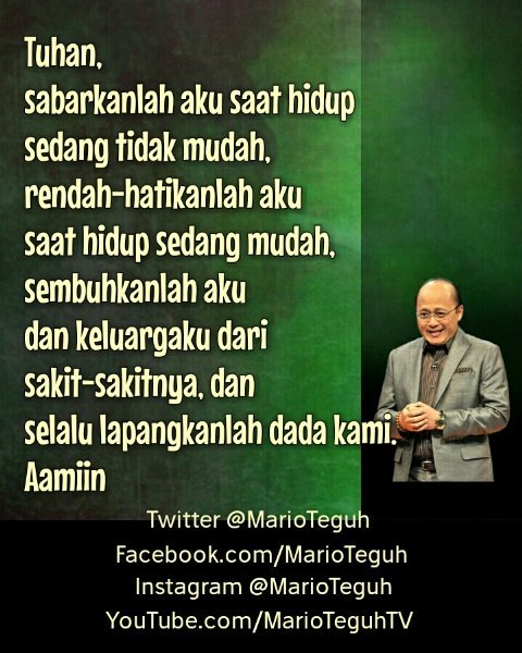 Amin....terima kasih atas doanya malam ini pak Mario Teguh,salam super dan selamat malam pak Mario Teguh.