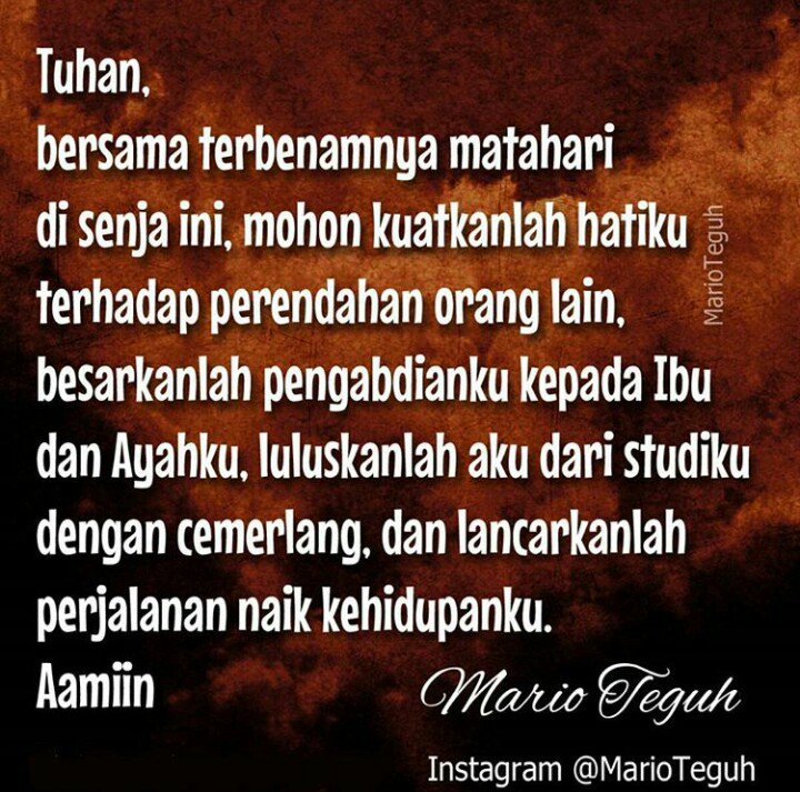 Amin....terima kasih atas doanya senja ini pak Mario Teguh,salam super...selamat malam pak Mario Teguh&ihu Linna yg cantikkkk.