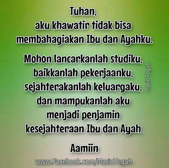 Amin...terima kasih atas doanya senja ini pak Mario Teguh,salam super dan selamat sore pak Mario Teguh.
