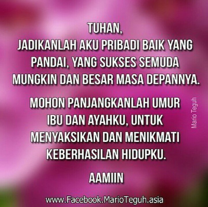 Amin...terima kasih atas doanya pagi ini pak Mario Teguh,salam super dan selamat sore pak Mario Teguh.