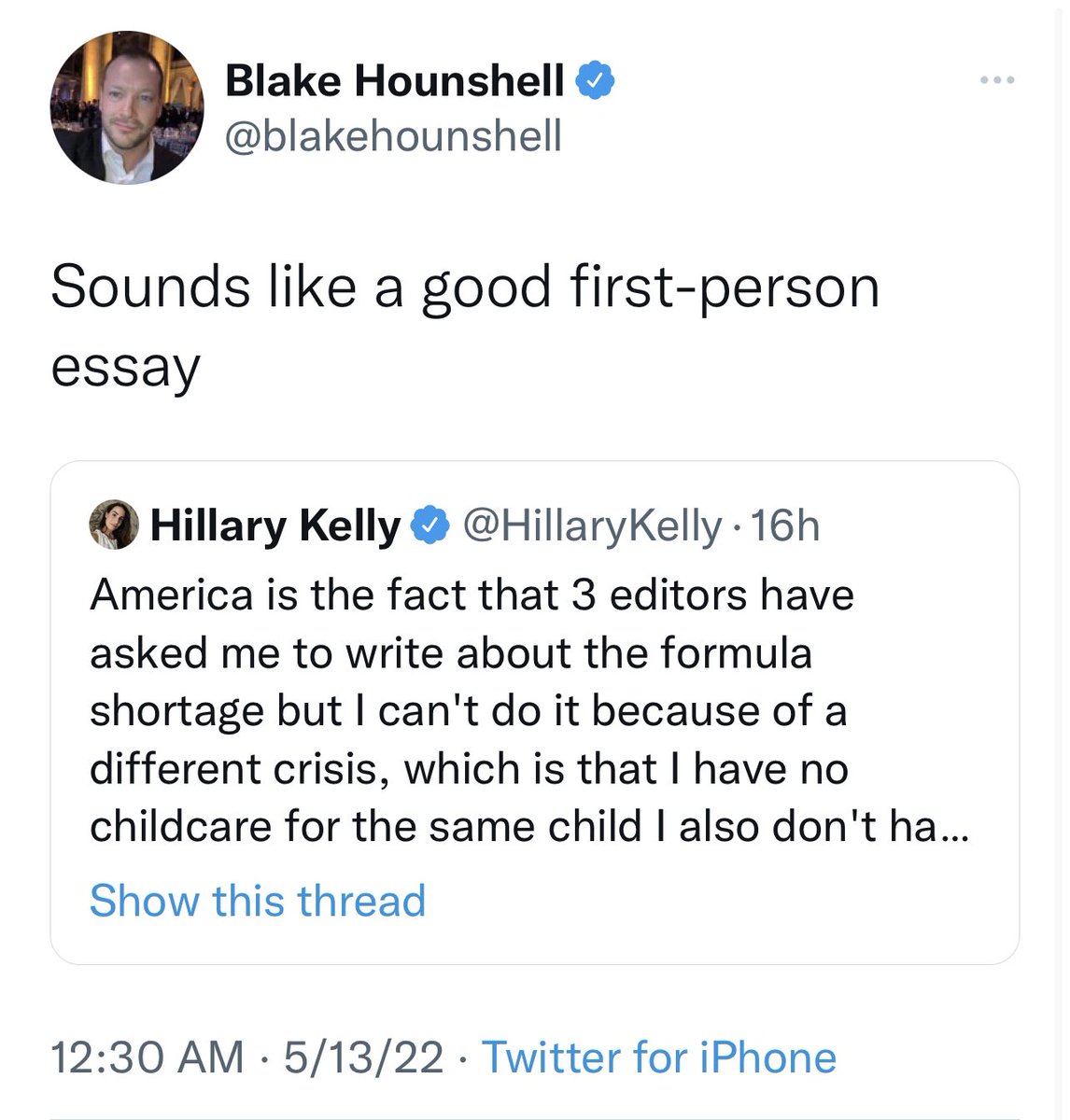 America is both writer Hillary Kelly's tweet and this NYTimes editor's QRT in response...pic.twitter.com/iGKf4O1D96