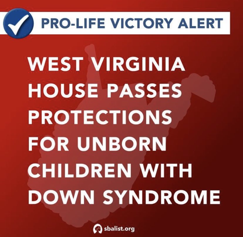 AWESOME news we all could use this week!! We are blessed to be part of this amazing team of prolife advocates in the great state of West Virginia! “Embrace don’t erase” Down syndrome!