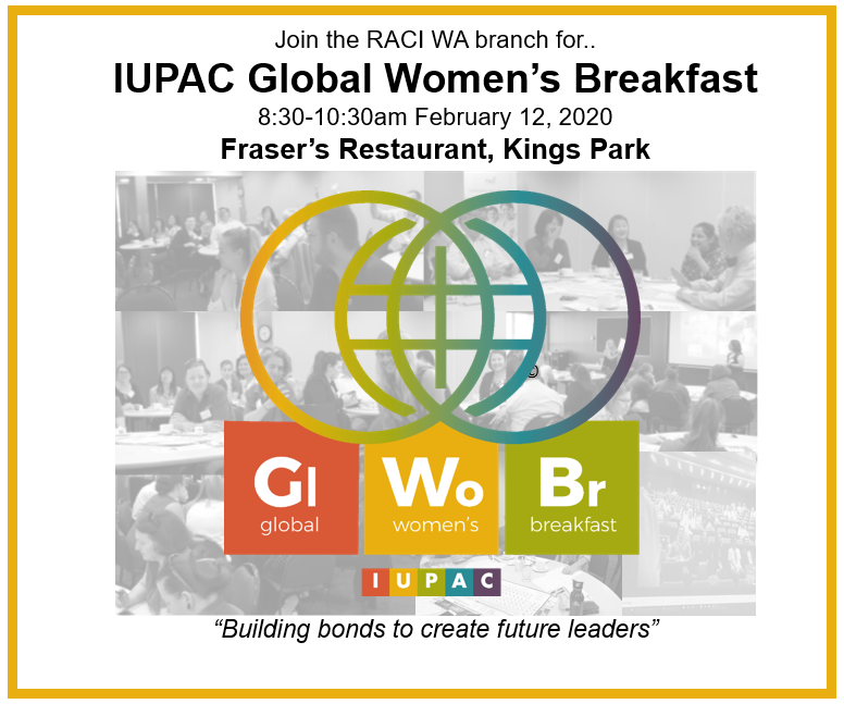 @IUPAC Global Women’s Breakfast at Fraser’s Restaurant on February 12th @ 8:30am. Register here before Feb 5th: https://tinyurl.com/rmad88m#OzChem#GWB2020#SupportWinC#WomenInChemistry@RACInationalpic.twitter.com/wQYshSJ9Fa