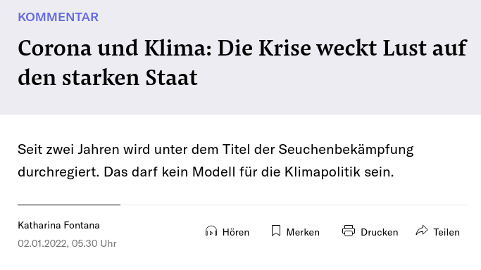 @nzz in den letzten Tagen bewirtschaftet: Ob Corona oder Klimawandel - wir sollen ja nicht zu ambitioniert im Kampf gegen grosse Probleme sein. Das Allgemeinwohl ist nicht so wichtig. Und überhaupt, alles halb so wild.pic.twitter.com/CV10kVgsQX