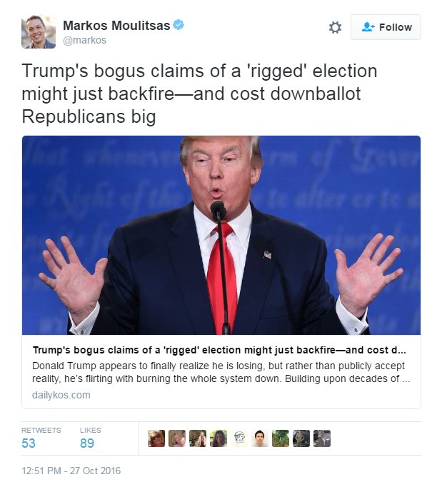 Saying "rigged" and you're no better than Trump. 6M 2012 Obama voters didn't vote and that's why we lost. Plain & simple.