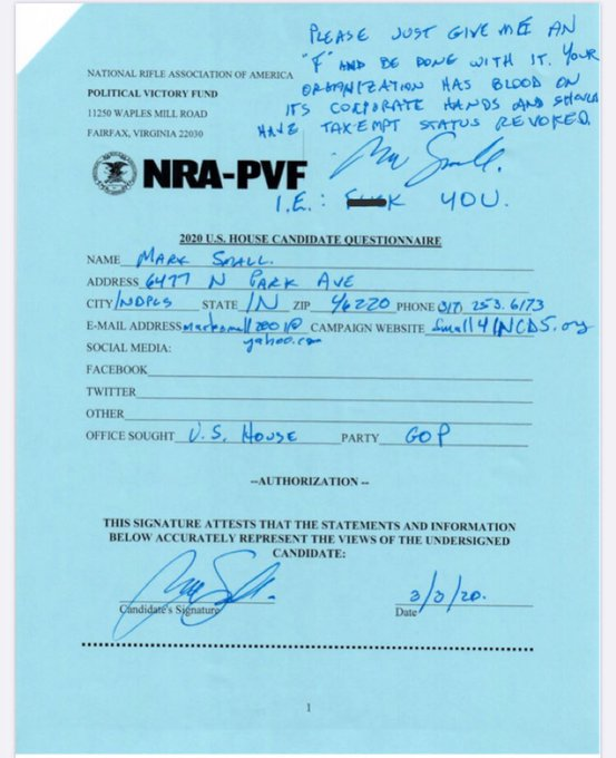 My response to the NRA's candidate questionnaire.pic.twitter.com/M7vMt08RwL