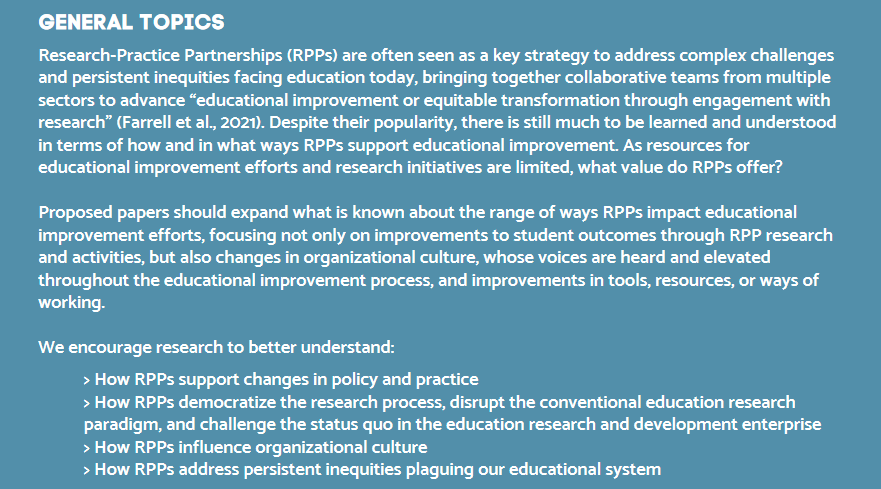 The Peabody Journal of Education has a call for paper proposals for a special issue on research-practice partnerships