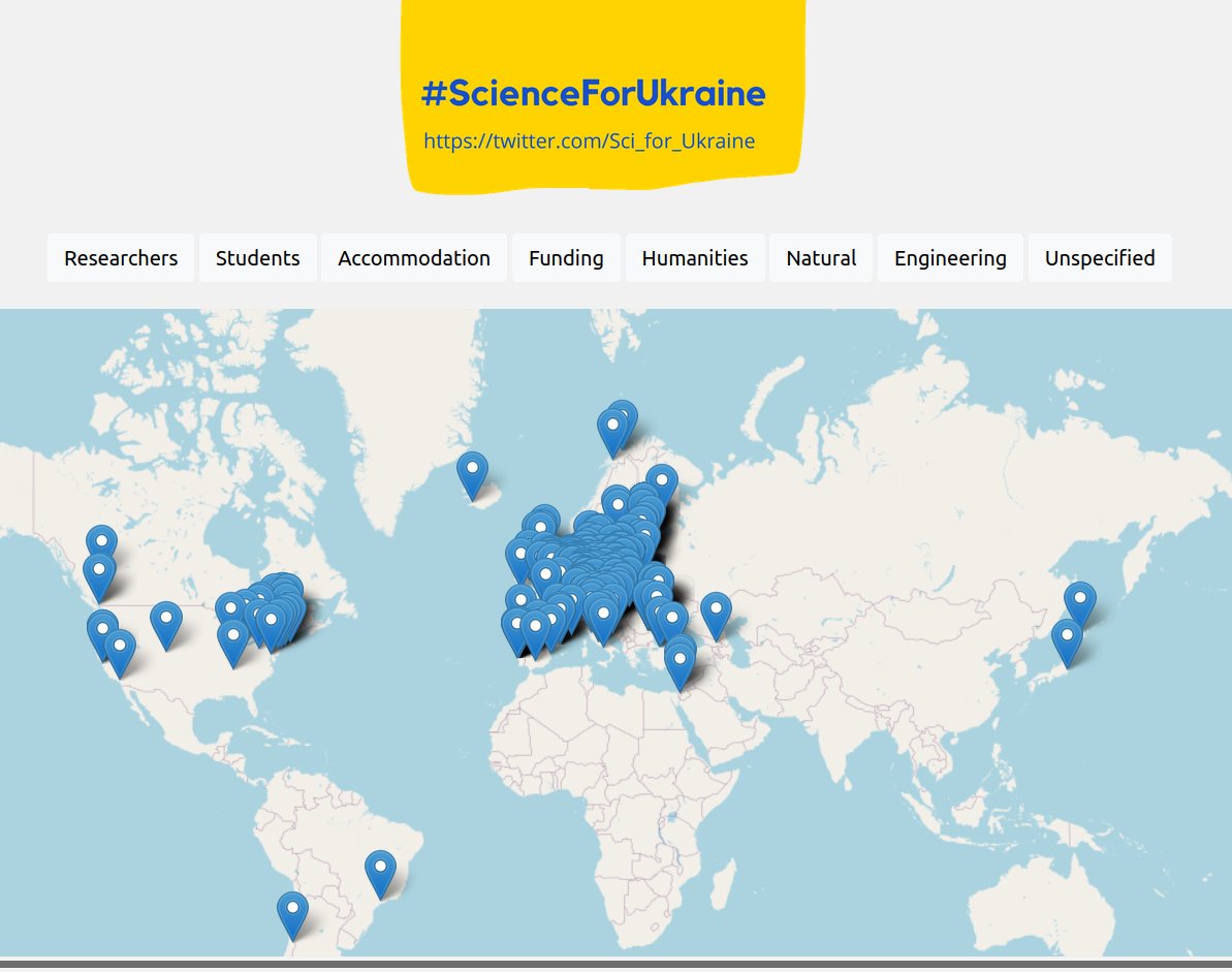 Scientists posting lab openings and hosting offers worldwide for Ukrainian scientist and student refugees. Have space in your lab? https://scienceforukraine.eu/