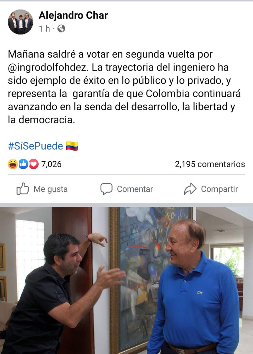Hoy es el día de la derrota definitiva del uribismo, de los clanes políticos, la derrota de Abudinen, de Carrasquilla, de los Char, de Pastrana, de Duque, de los de siempre. Hoy es el día de la victoria del verdadero cambio, salgamos ya a votar por