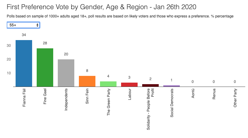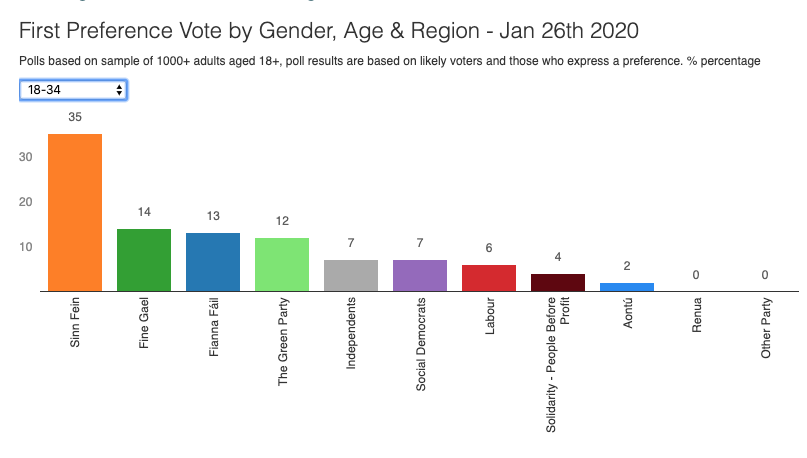 I hadn't realised that voting intentions in the Irish election are getting as starkly stratified by age as they are in the UK. It promises to be a really intriguing general election next Saturday. (The graphs are from a