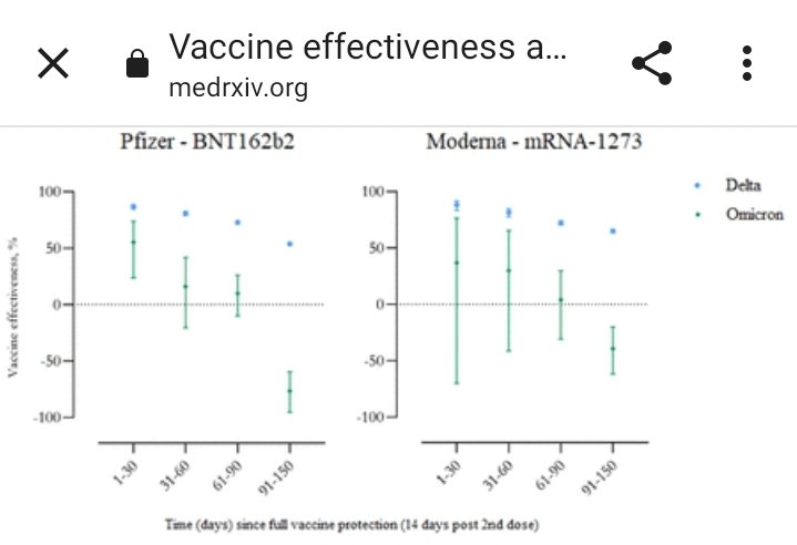 Impfung erhöht nach 3 Monaten massiv das Risiko sich mit Omikron zu infizieren. Bei Biontech ist das Risiko für Geimpfte sich zu infizieren um die Hälfte bis das Doppelte höher als für Ungeimpfte, bei Moderna knapp um die Hälfte höher!