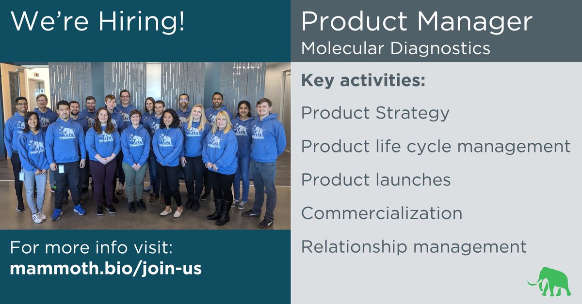 #moleculardiagnostics to market and want to work with a collaborative and driven team? Then apply for our Product Manager position! https://jobs.lever.co/mammothbiosci/c1592f24-4492-4a81-8456-6a23820e5dbd …#CRISPR#Diagnostics#Healthcare#Biotech#Career#ScienceCareerspic.twitter.com/q0TWaWESlf