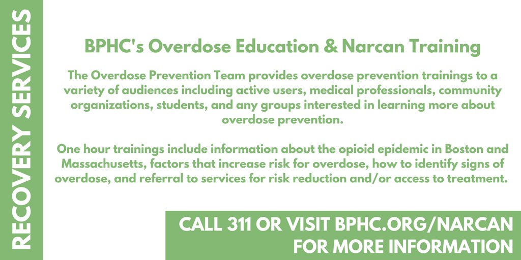 Sign up for one of BPHC’s OD Prevention Education & Narcan Trainings today! Call 311 for visit http://bphc.org/Narcan for more infopic.twitter.com/780DlPfkXq