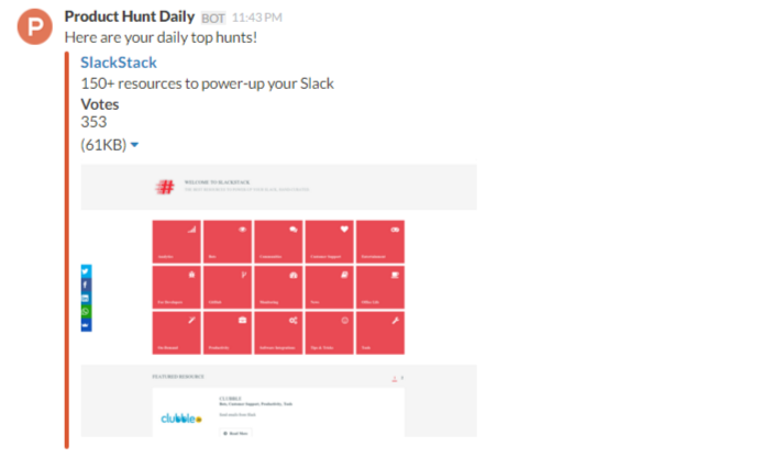 A Product Hunt Slack bot inside our Slack telling us about our Slack product on Product Hunt. This is confusing!pic.twitter.com/EaiTEIAQHw