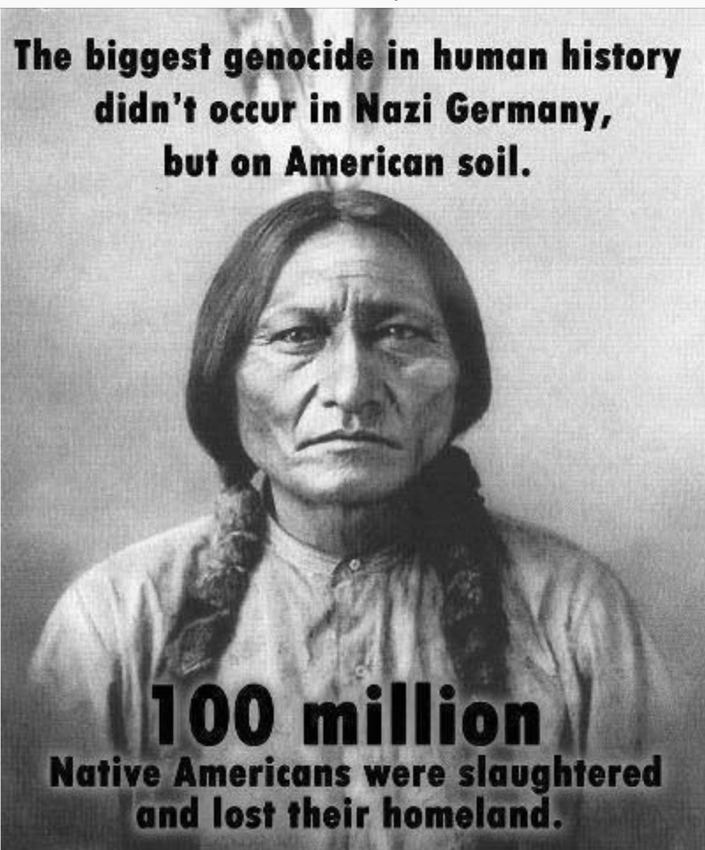 Let’s talk about Native Americans, everyone seems to forget about us - largest genocide in history, small pox given to survivors, forced off their lands, sent to concentration camps, bounty for their scalps, kids forcibly removed & sent to boarding schools, etc.