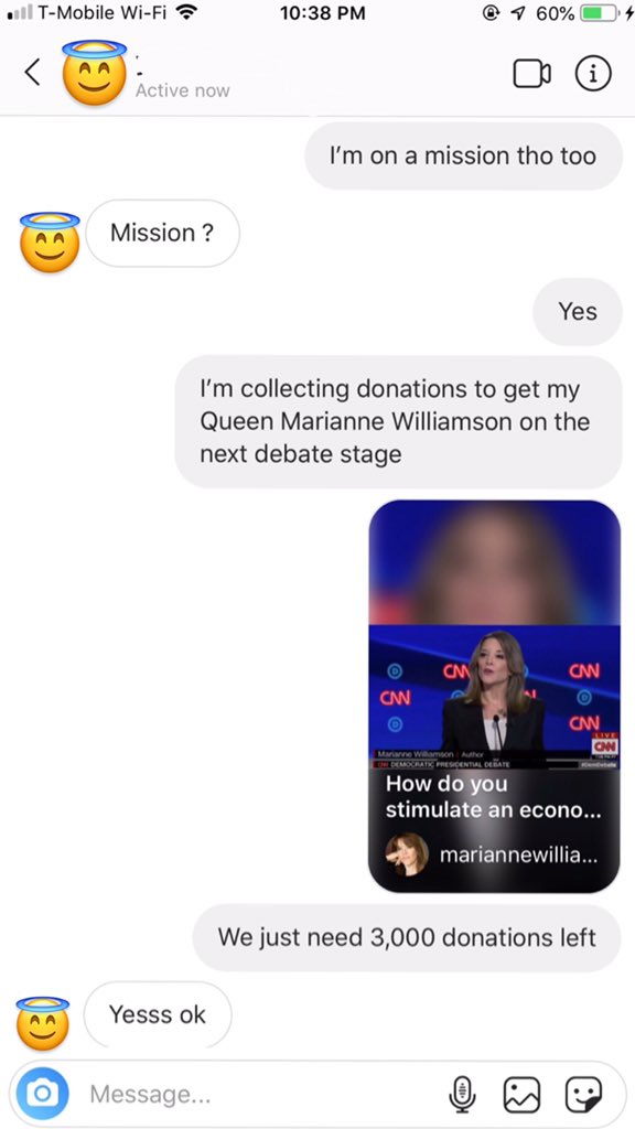 This is so exciting really happy for you Marianne! Americans come on, ask her best friend, family member, next door neighbour, even a stranger. Just one dollar counts a donation for Marianne! Her voice is so important and must be at the next debate in September.