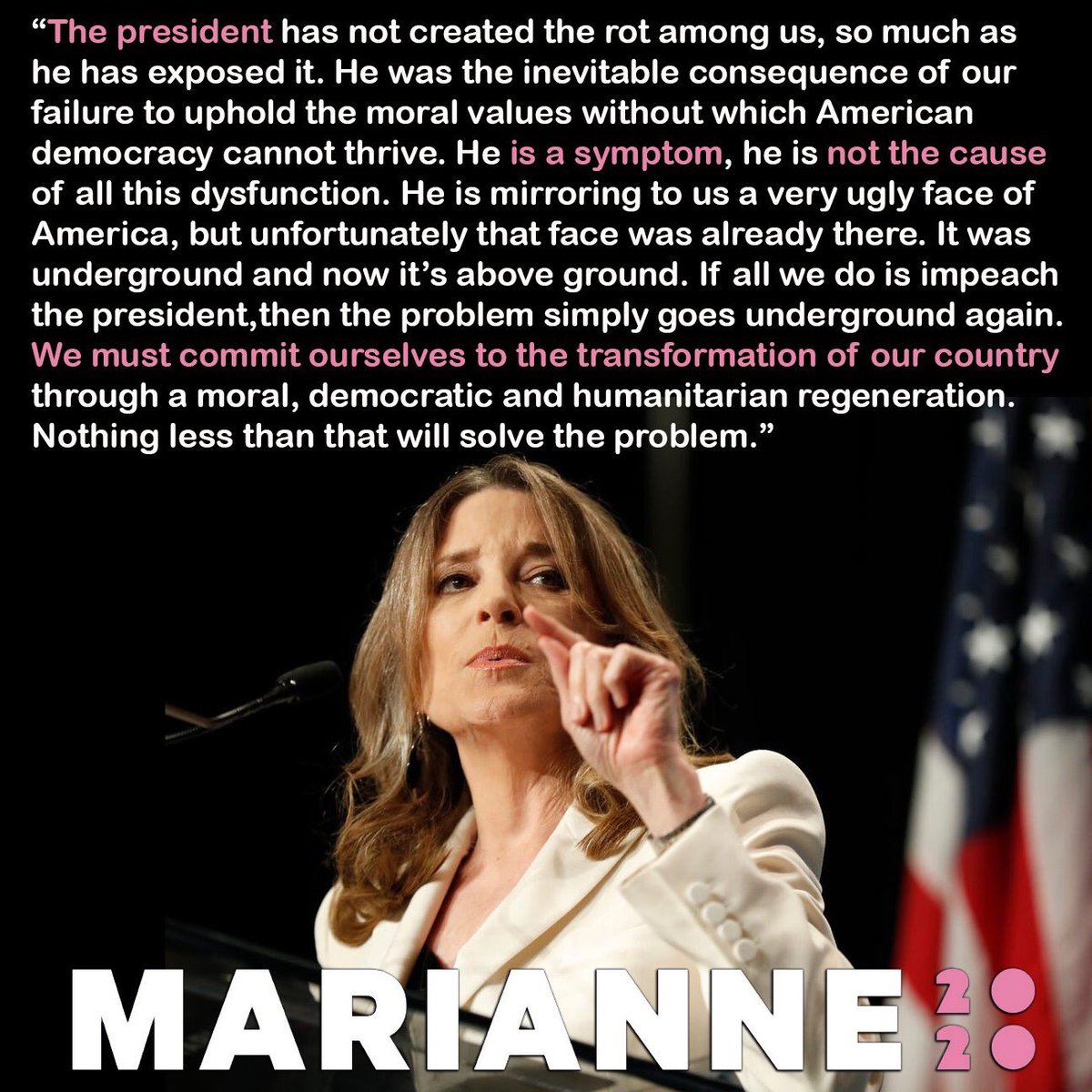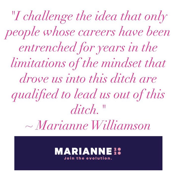 “A political establishment does not disrupt itself. A political establishment is a status quo that perpetuates itself. It’s time for a fundamental pattern disruption. It’s time for Marianne Williamson 2020.”pic.twitter.com/TZyPEFkUdu