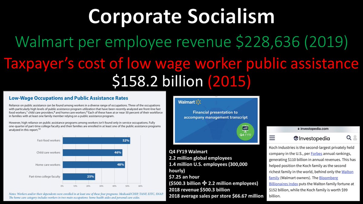 We muat form cooperative employee-owned businesses. Walmart is earning >$228,000 per employee and paying <$15,000 while taxpayer-funded subsidies are $158B whichreduces corp taxes from $202B to $44B (2.2%). We pay $2T (97.8%).Employee-owners can double pay and work 1/2 the hours.pic.twitter.com/yJoklz0GZp