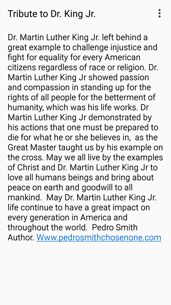 My Tribute to Dr. Martin Luther King Jr, the fight against injustice, discrimation and equality continues in America! Pedro Smith author. Www.Pedro Smith Chosen One. Com Read article!pic.twitter.com/BJgZPFTN7D