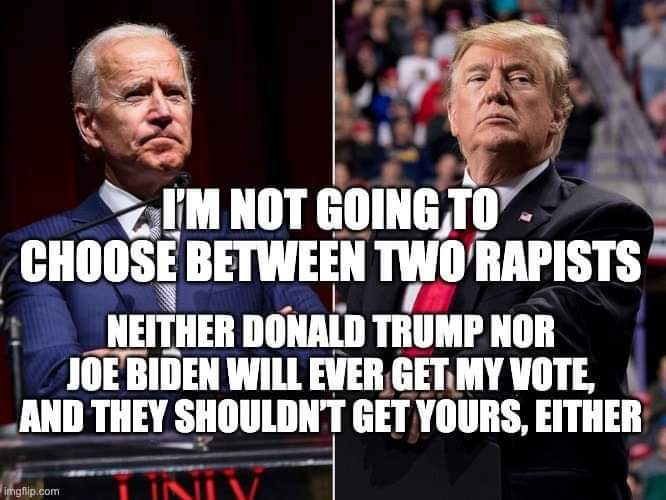 For me, this is simple math. If Trump wins, we get another chance at this in 4 years. We elect Biden, his VP is the next nominee, meaning 8-12 years of guaranteed neoliberal or right-wing fascism. The ecosystem can't take that. So no, I'm not voting for Biden.