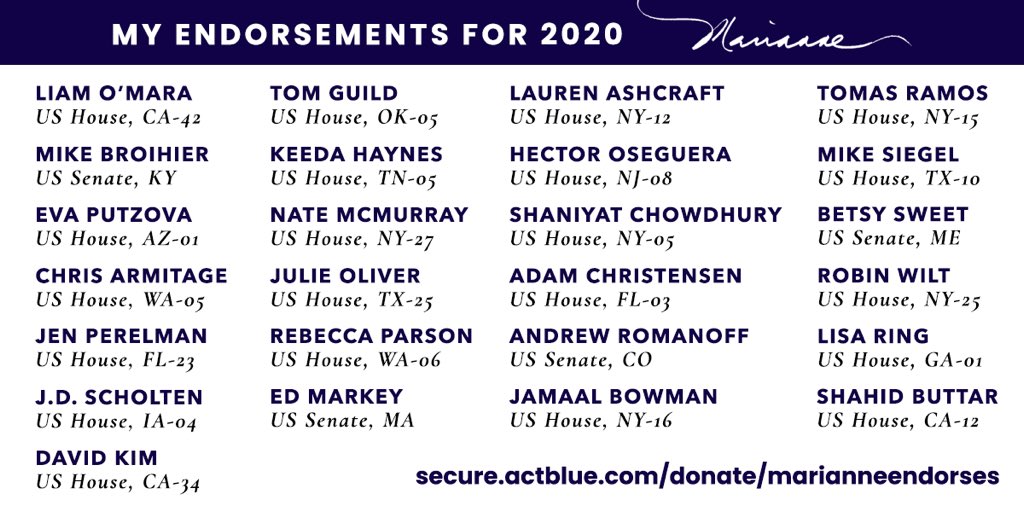 @AOC Thank you@marwilliamson &@BernieSanders for all the work you have done and continue to do! Go! all the good hearted people focused on bringing America to be Just, to be Loving and to be Loved Again!!! Our Planet and our Kids demand transformation!!pic.twitter.com/Ckso7dgaSZ