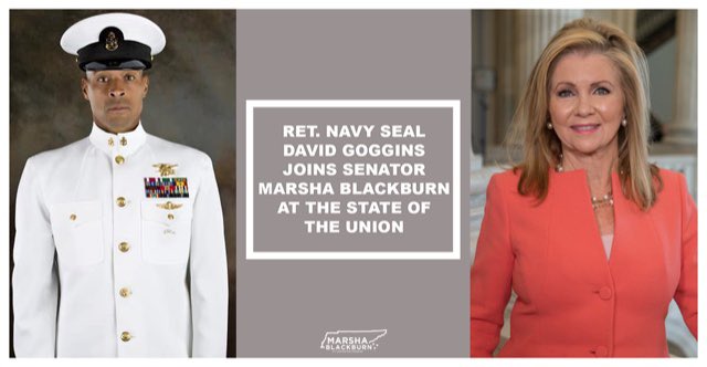 @davidgoggins has overcome poverty and prejudice and served our country with honor and distinction. As a Navy SEAL, he fought to defend our nation in Afghanistan and Iraq. I’m glad to have David join me at the#SOTU