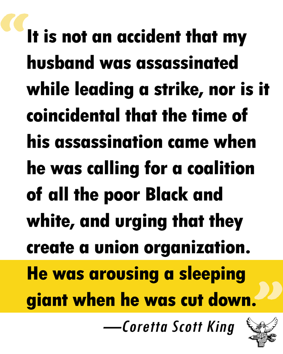 Dr. King was a union man — and it's in his honor we declare eternal hostility against the interrelated "Triple Evils" of poverty, racism, and militarism.