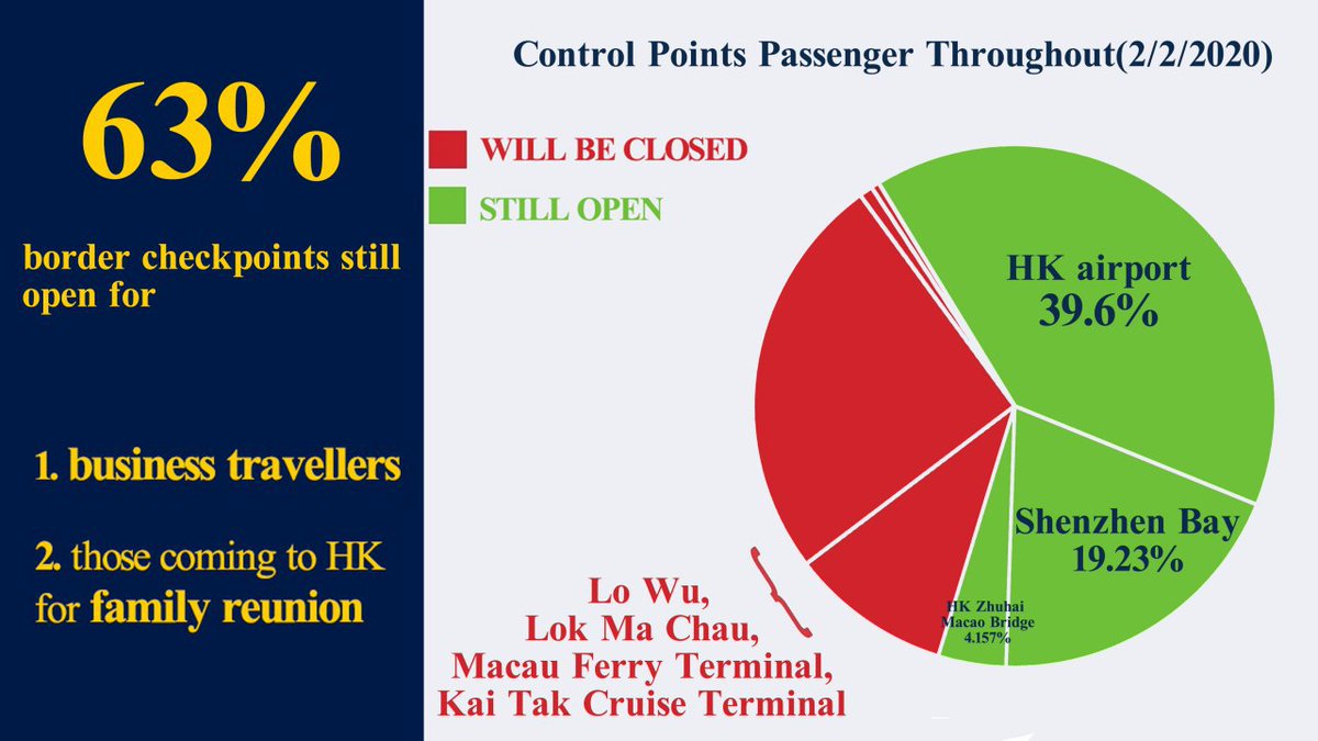 The Hospital Authority Employees' Alliance, the union behind the medical strike, says Carrie Lam's latest border restrictions aren't enough as the three ports of entry still open account for >60% of all arrivals to HK from mainland China.pic.twitter.com/p8wG0VqzPl