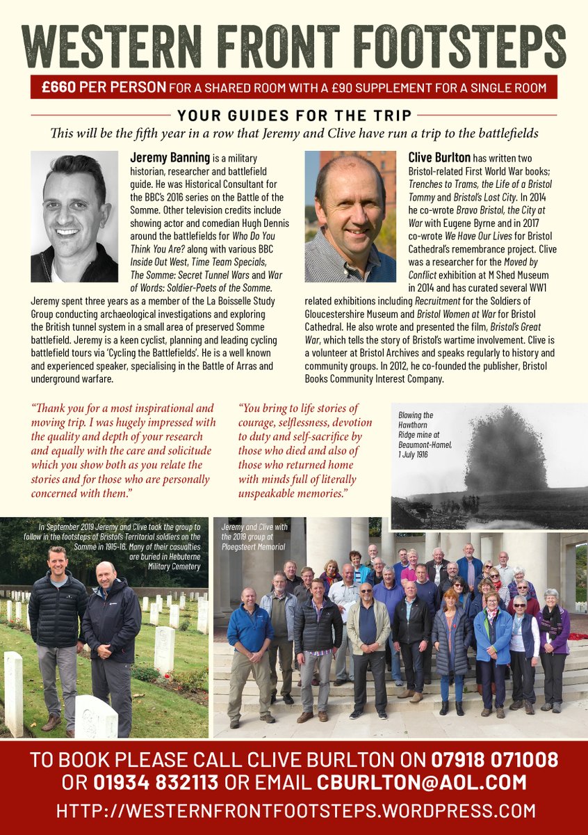 New Battlefield Tour announced for 2020. 'Western Front Footsteps' - with a look at the tunnellers' war & postwar reconstruction. 11-14 September. Another one of our coach trips with Bakers Dolphin. Please take a look. And a shiny new website too! https://westernfrontfootsteps.wordpress.com/