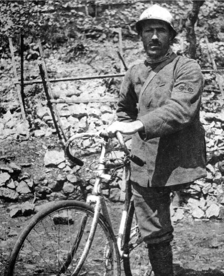 Writing about Enrico Totti today, my favourite WW1 nutter. The one-legged cyclist tried to join the army, they didn’t want him, so he joined up unofficially and fought on the Isonzo. Mortally wounded, he threw his crutch at the enemy and cried “I do not die” before...dying.pic.twitter.com/mXAHrIUyPo