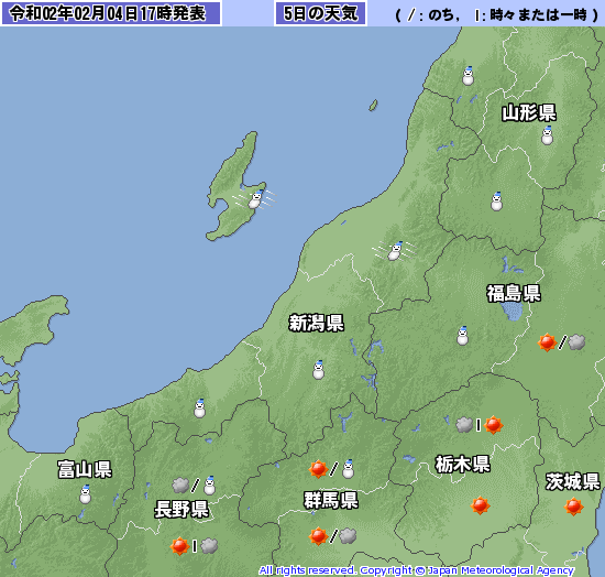 新潟付近では吹雪の予想、視界不良による交通への影響などに十分注意を。