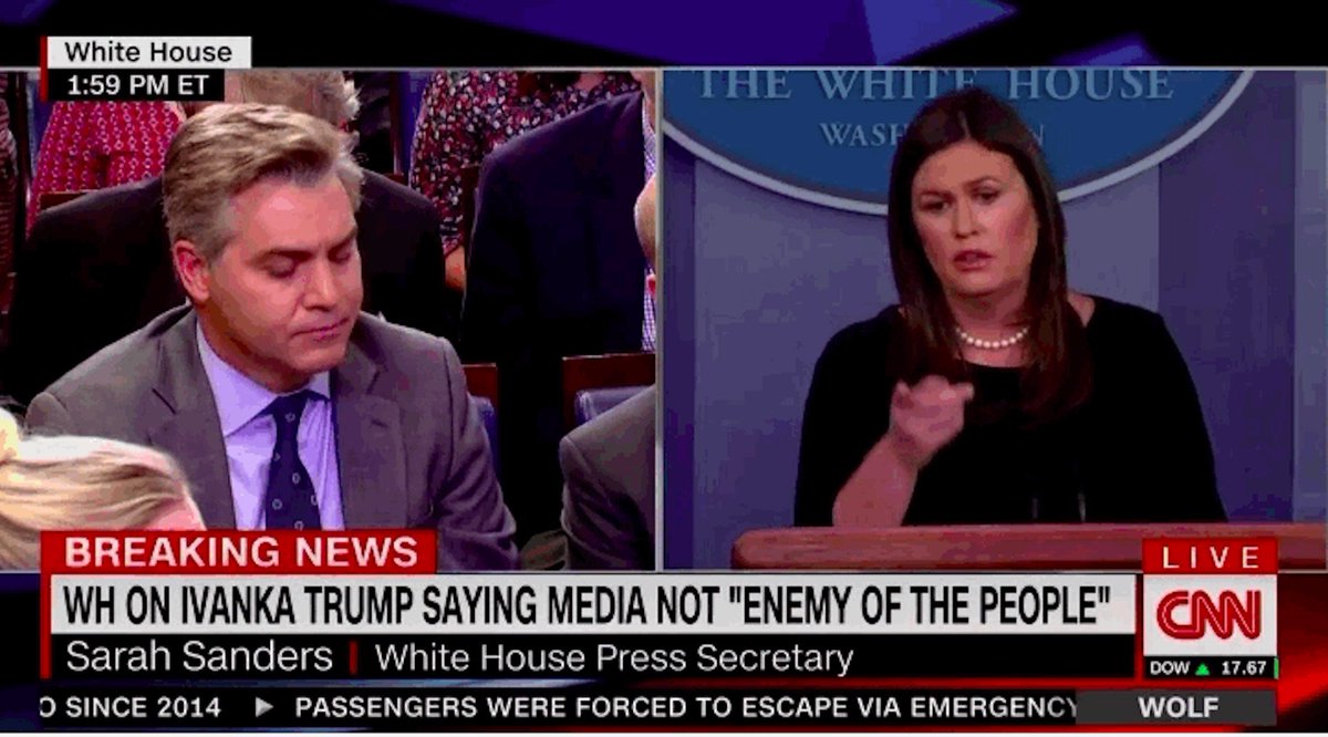 What the hell took so long? Jim Acosta can take dozens of the the mouth breathing inbreds at the rally but it takes Sarah "marbles in her mouth" Huckleberry to push him over the edge.