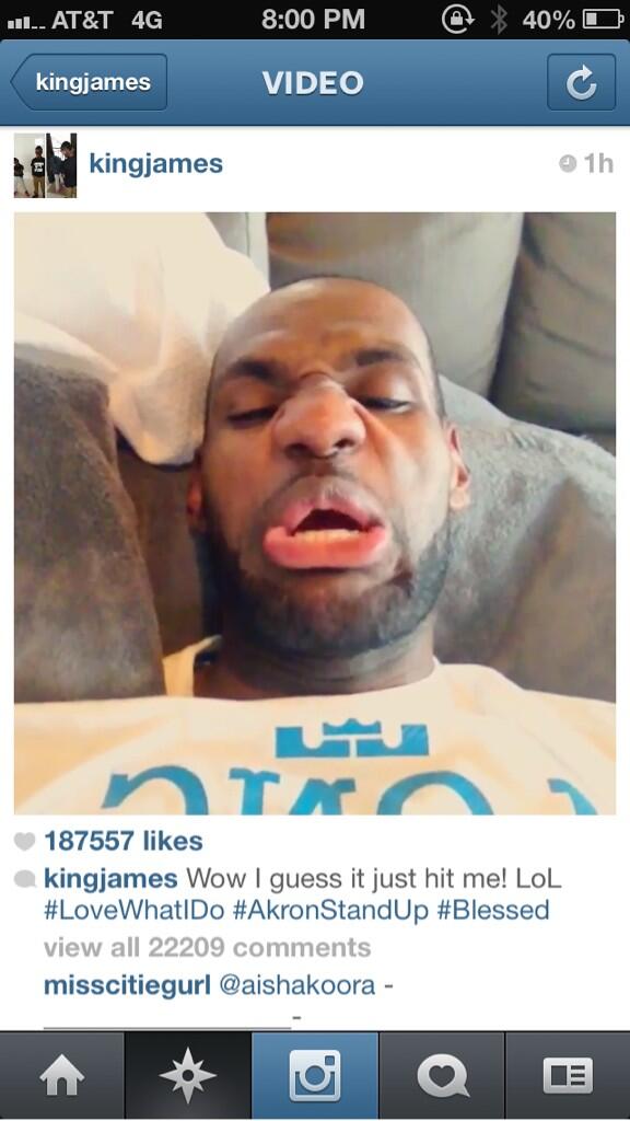 @KingJames RT@mashable LeBron Ends Social Blackout With Instagram Video Post http://on.mash.to/126PJ6T pic.twitter.com/sX7f6iT8Pg