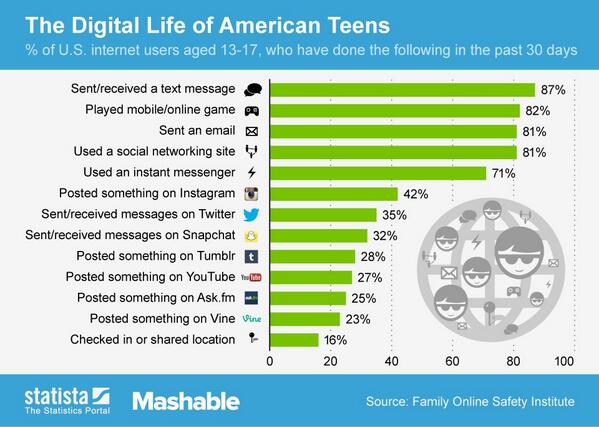 Amazing stats from @mashable: 87% of American teens text monthly http://on.mash.to/1enf5Sf pic.twitter.com/2agDjfnaWz