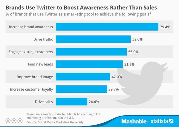 What most top brands really use twitter for #branding #awareness over #sales via @mashable ://t.co/hsgP0mIjV5pic.twitter.com/IzuAXoCqGf