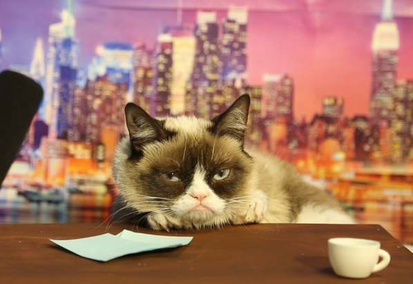 @mashable: Sorry Colbert, Grumpy Cat's 'Late Show' audition tape leaked and it's purrrrrfect pic.twitter.com/kkkDQWVNBZ”@erniemm , Gato gana
