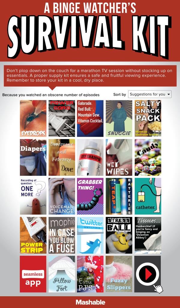 @mashable @Netflix binge-watcher's survival kit! http://goo.gl/DFEtQq