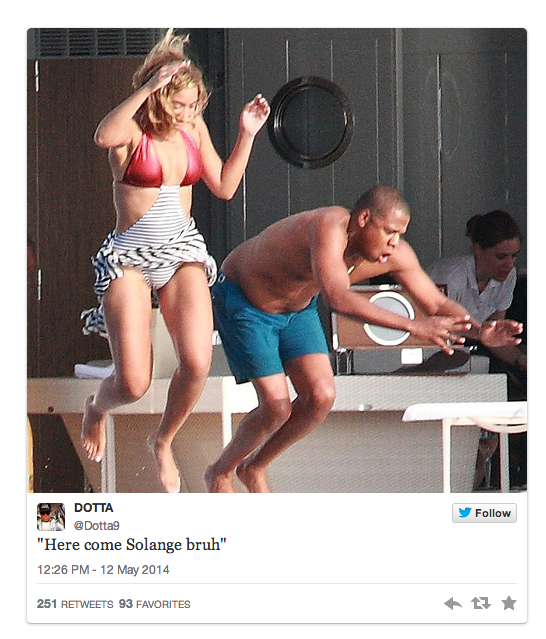 “@mashable: Solange and Jay Z incident turned everyone into a Twitter comedian http://on.mash.to/1oJx9v0 pic.twitter.com/qRg2ftfhFT" @Dotta9