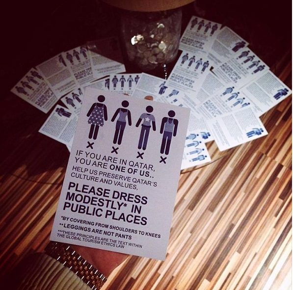 #Qatar expect you to dress RT@mashable: When in Qatar do as Qataris do & cover up http://on.mash.to/1jreGhL pic.twitter.com/j2pfnjWg58