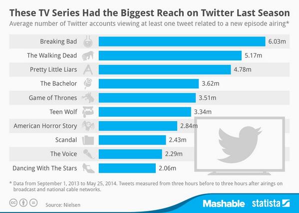 @mashable: Programas de TV que han tenido mayor impacto en Twitter en la pasada temporada http://on.mash.to/1nPLVUv pic.twitter.com/CeJFhnU2vg
