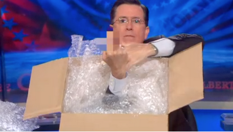 @mashable: Stephen Colbert gives Jeff Bezos the finger - twice. http://on.mash.to/1kBOS7R pic.twitter.com/hEr1sOCAmW” packaging was way better.