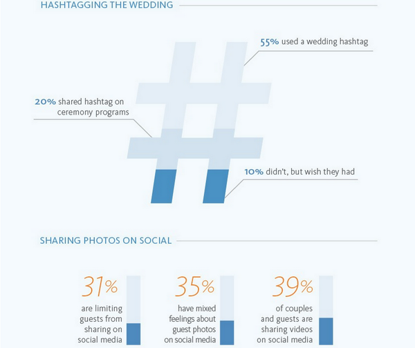 RT @mashable: 55% of couples polled now use a #wedding hashtag: http://on.mash.to/1lm98ar ht @TheKnot pic.twitter.com/dZdW62N1v4 Cool stats!