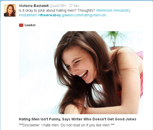 "it is ok to joke about hating men?" is question?pic.twitter.com/rbTspxCbhx